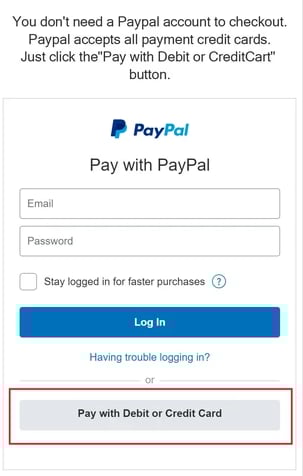 1.Log in to your PayPal account or use Credit Card Express;